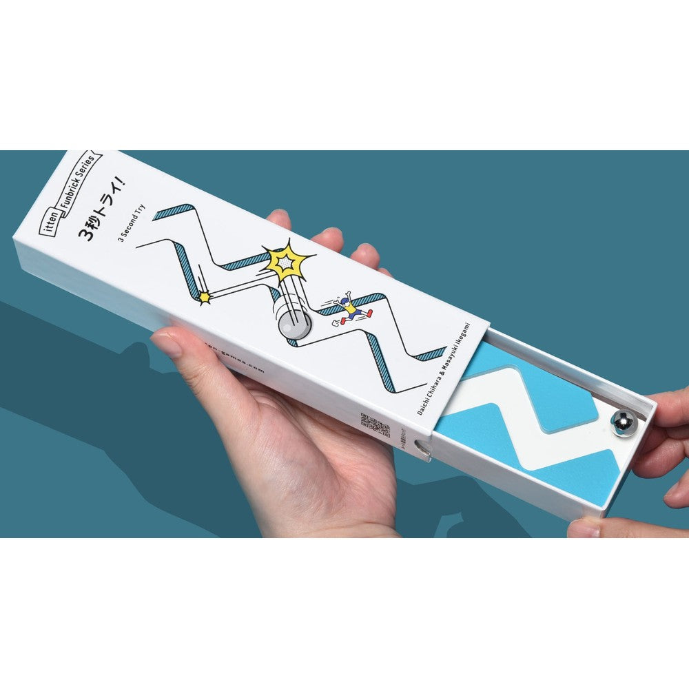 To start a round, the Master Player chooses Brain or Physical and flips the top card of the deck. Then, they place the ball at the top of the timer and let it go. Before it clicks on the magnet at the bottom of the track (about three seconds), players can bid on how many times they can perform the indicated task. It can be anything from saying "Madagascar" to bowing to folding a sheet of paper.