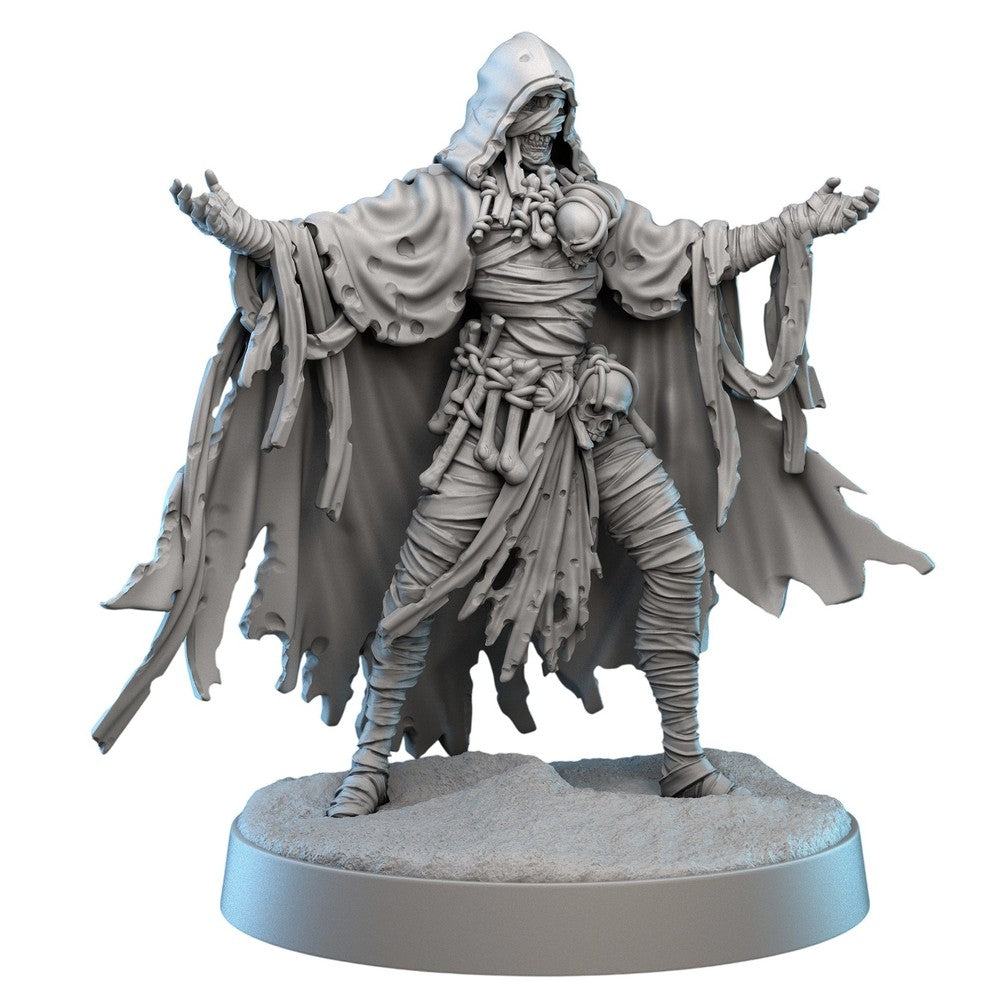 Ancient and embalmed in curses, Xanthus rises from his crypt to punish those who covet arcane power. Stalking the battlefield with unnatural purpose, he seeks out the strongest, most artifact-laden heroes and cuts them down with his devastating Withering Hand. Against well-equipped foes, he surges forward with surprising speed, empowered by their greed and his desire for arcane relics. His touch is ruinous—crippling limbs, shattering will, and sapping life with each swing.