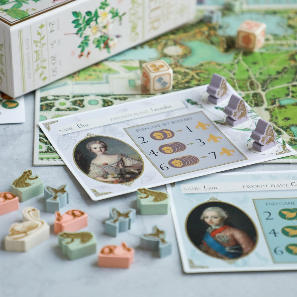 Frolicking, friends, and flowers! Players take on the role of little garden enthusiasts as they invite animal friends to their garden party. At the beginning of the game, your garden party has no guests! Send your helpers to different parts of the garden at Versailles to collect flowers, find coins, trade, and invite animal friends to your party.