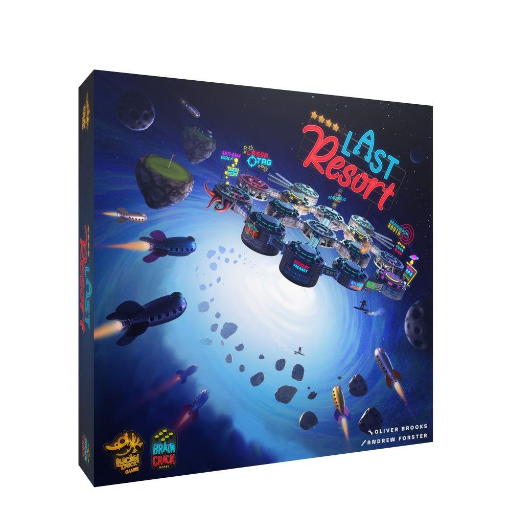 In Last Resort, each player is the proud new owner of a defunct space station, which they plan to turn into the galaxy’s trendiest space resort!