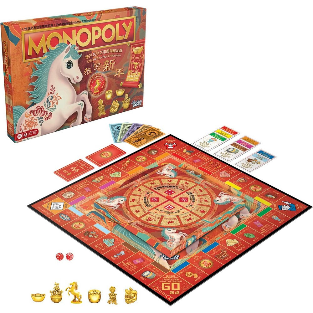 • MONOPOLY GAME WITH CHINESE NEW YEAR THEME: Celebrate the Year of the Horse with the Monopoly Chinese New Year Celebration game! This family game of good fortune is for 2 to 6 players