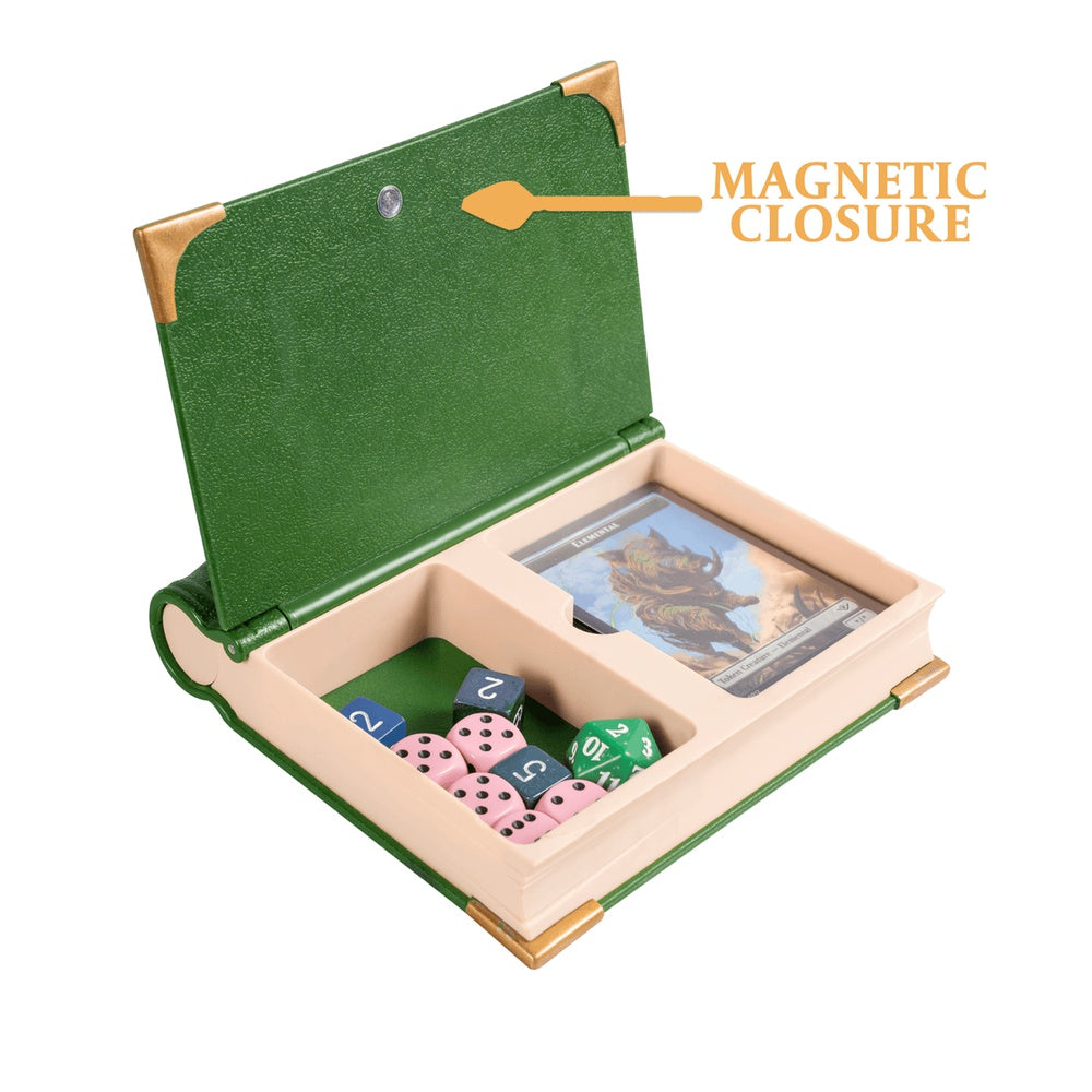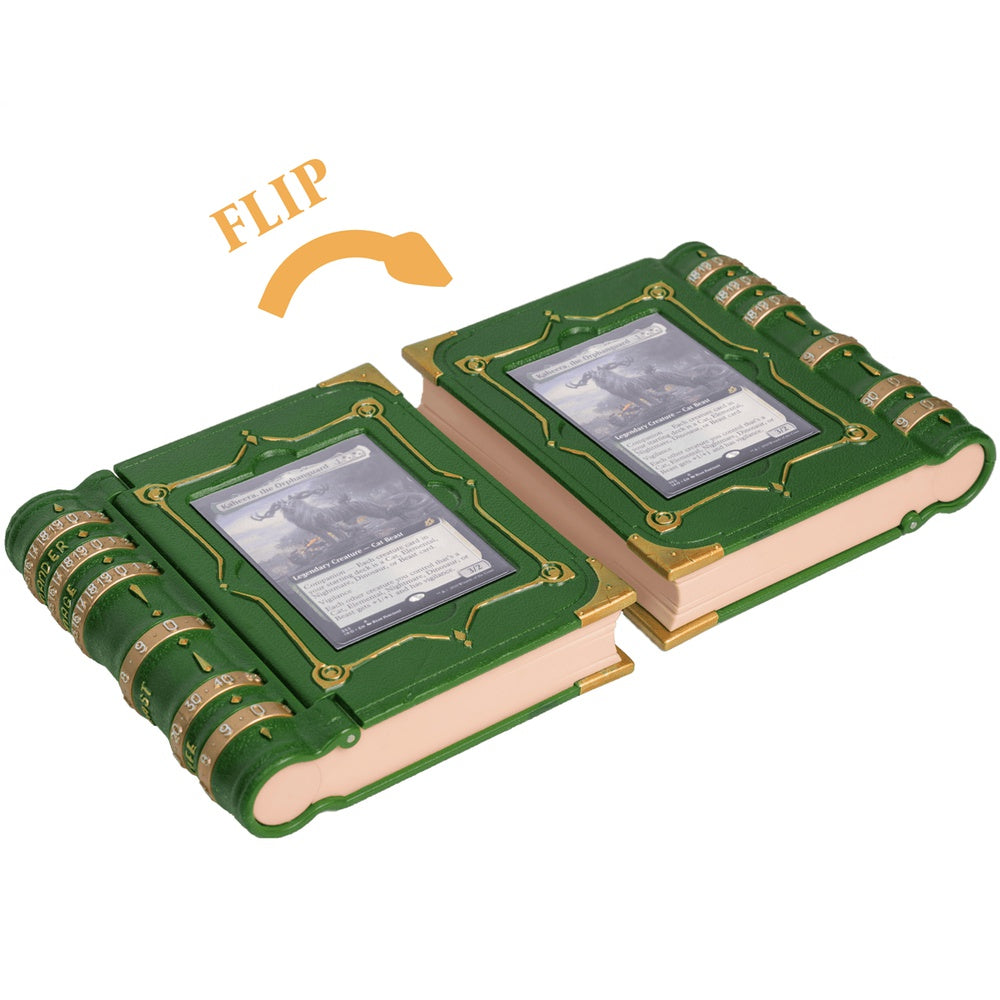 The MTG Commander's Codex is a book-shaped command zone designed to track every crucial game element, including life totals, commander casts, and commander damage—all in one sleek, immersive accessory. Featuring click-to-position number dials, a dedicated commander slot, and a hidden storage compartment for dice and up to 30 tokens, the Codex enhances organization while keeping gameplay smooth and uninterrupted. With its reversible design, compact footprint, and intricate detailing, the Commander's Codex is the perfect tool for casual and competitive Commander players alike. Have fun with a stylish, functional, and immersive way to track your matches!