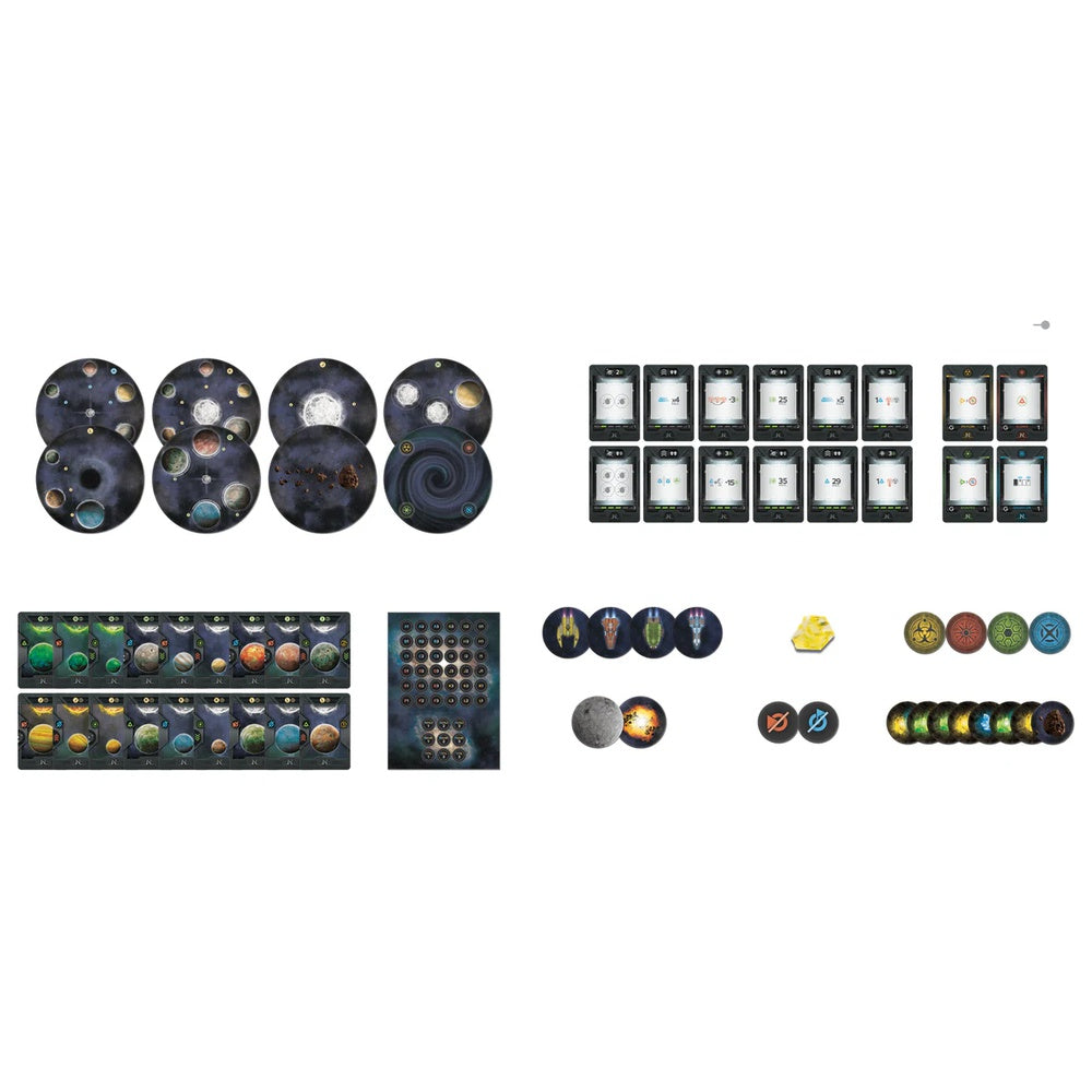 Expansion "Asteroids" that compliments the base game "Nexum Galaxy". With this expansion, Nexum Galaxy becomes completely a 4X game (eXplore, eXpand, eXploit and eXterminate). It also introduces asymmetry in the factions, technology, new resources, more ships... Increases replayability by adding new Systems to those included in the base game, as well as Event and AI cards. Special Multibattle mode. Play several games simultaneously, by sides transferring ships and resources between tables, through Wormholes. Special Campaign mode, Navigate and fight for the different Sectors, orienting yourself with the map and atlas of the Galaxy. Special Tournament mode. Join several base+expansion games and organize with your friends, or in your association, or in the classroom, quick tournaments of up to 4 tables of 4 players playing simultaneously by sides.