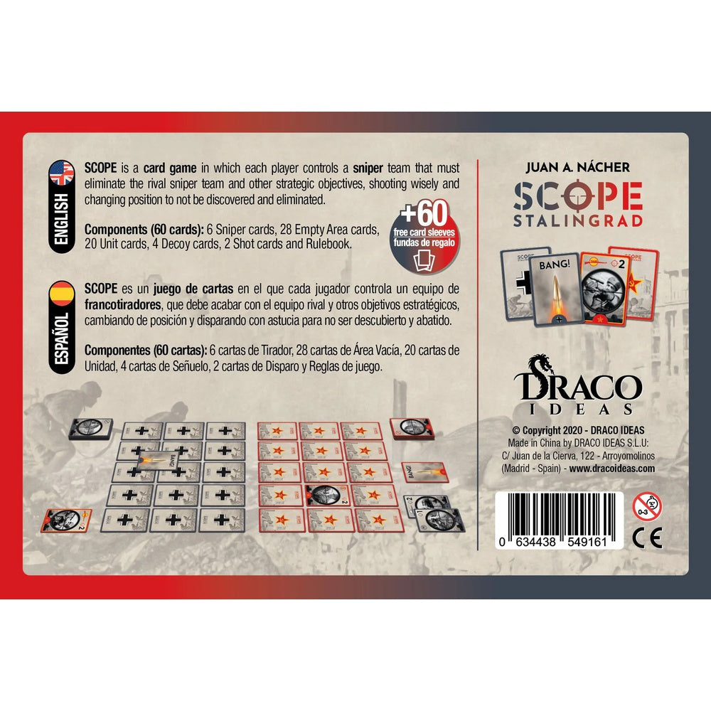 SCOPE is a game for 2 to 4 players, set in the battle of Stalingrad, where players take the role of snipers from both sides. The objective of the game is to take out enemy snipers or eliminate enemy troops for a total point value that depends on the scenario played. 5-15 minutes per game, several difficulty levels and rules that are explained in two minutes. Once you try it, you won't be able to stop playing it.