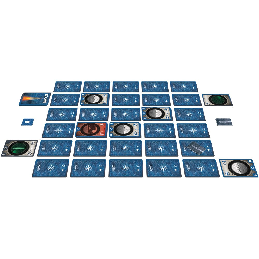 SCOPE U-boot is a game for 2 players, in quick and dynamic 15-minute games, recommended for ages 12 and up. It is an independent and very different installment of the SCOPE system, the only similarities are its grid of cards forming the board and the many strategic possibilities it offers! In U-Boot the German player will remain hidden under the surface and the Allied player must find him and avoid being sunk. The ships move on the surface, although the cargo ships move more slowly.