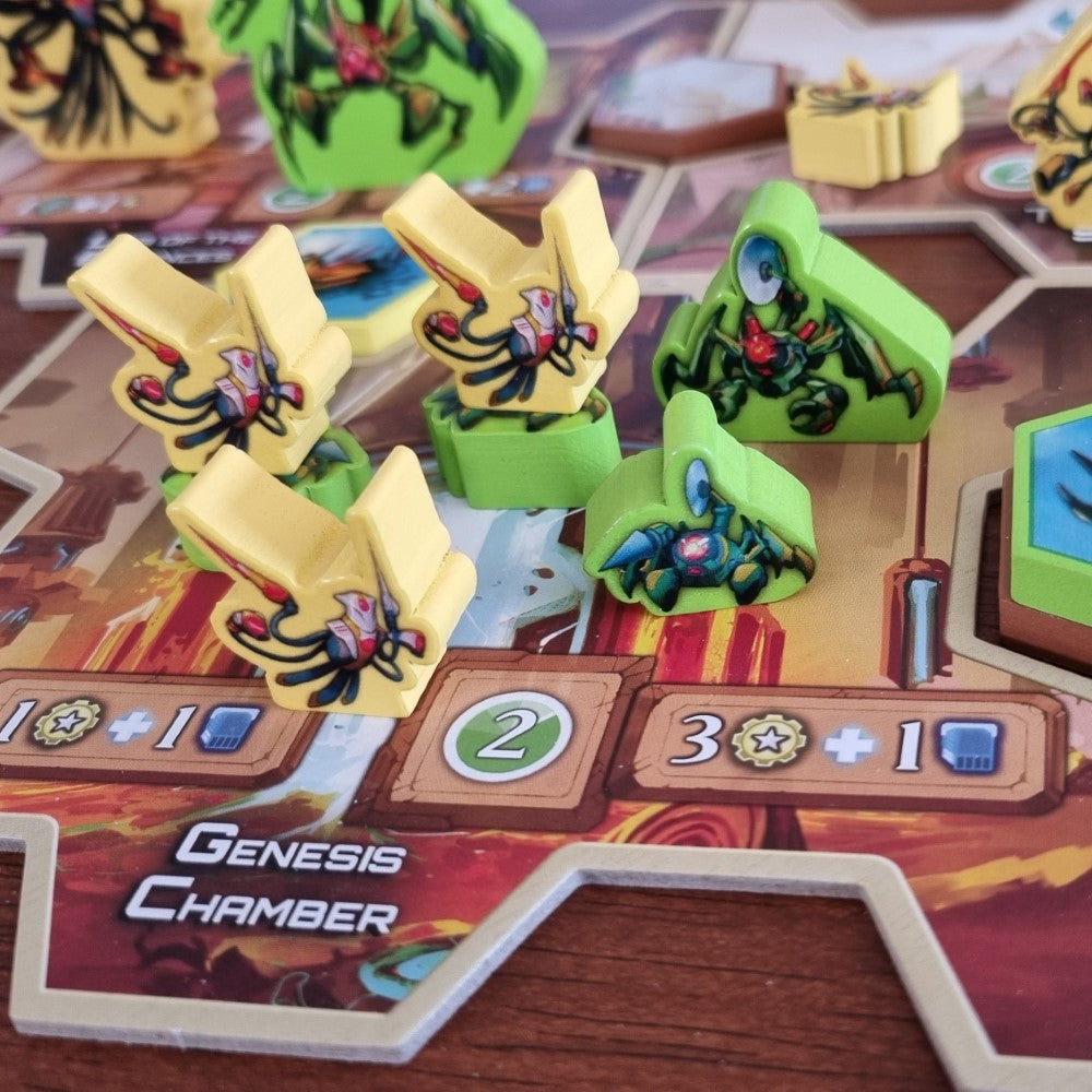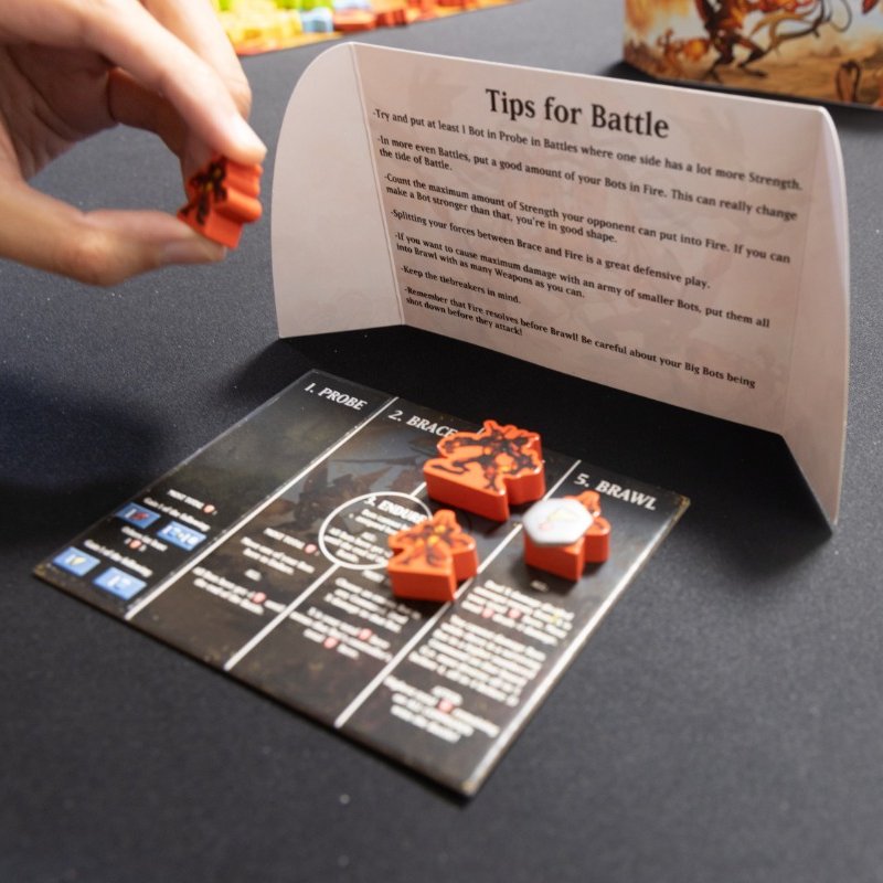- Hidden Bidding Combat: Assign your Bots orders in a unique and thematic combat system with no dice or cards; YOU choose what your Bots will do. Probe your opponent to gain additional data or weapons for the future, snipe their Bots before they can strike, brace for impact, and then get ready to brawl! Plus, get data whenever you destroy something!