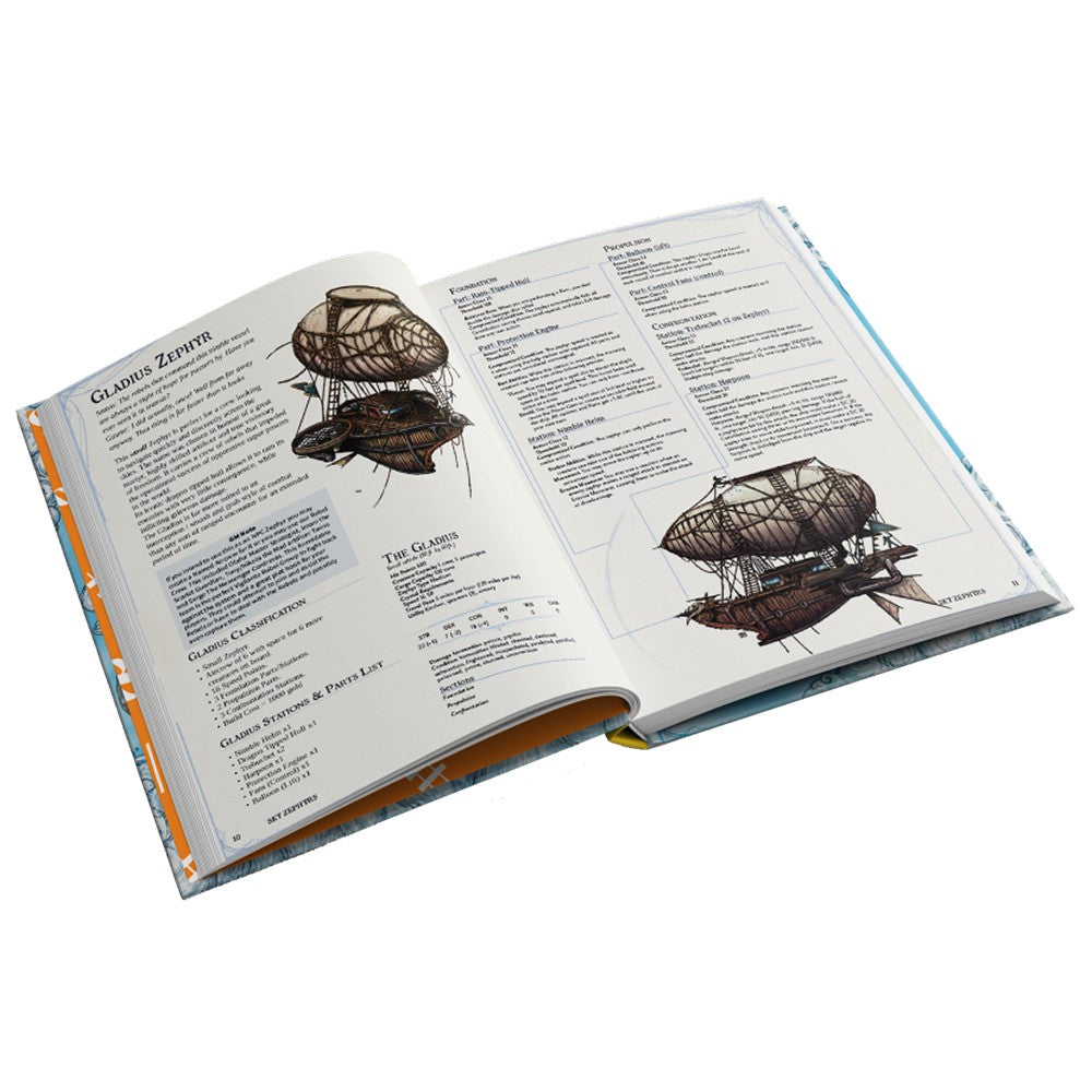 Sky Zephyrs includes a QR code for a one month free subscription to the first ever TTRPG "vehicle builder webpage application." In the builder app, you'll be able to select from over 200 parts to customise your own airships. In the future, we'll expand the app for you to create other types of custom vehicles.
