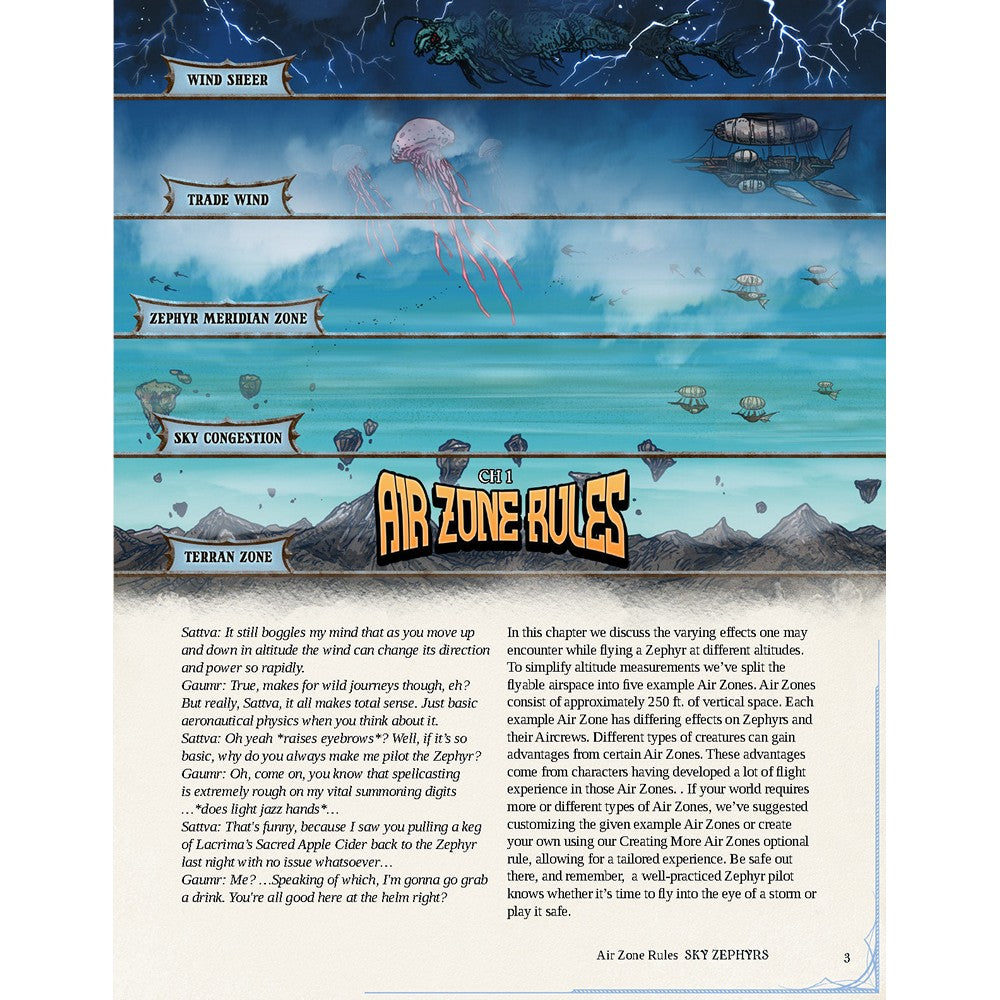 Sky Zephyrs is a 256 page tome that reimagines how vehicles and airships operate in DnD5e. Unlock a whole new way to experience swashbuckling, dynamic 3-dimensional vehicle movement and combat as you take your adventures to new uncharted heights. Soar across the skies in your custom-built Zephyr and hand-selected Aircrew. Use our vast collection of items, spells, and player options to turn the tide as you face a menagerie of creatures and NPC Zephyrs.