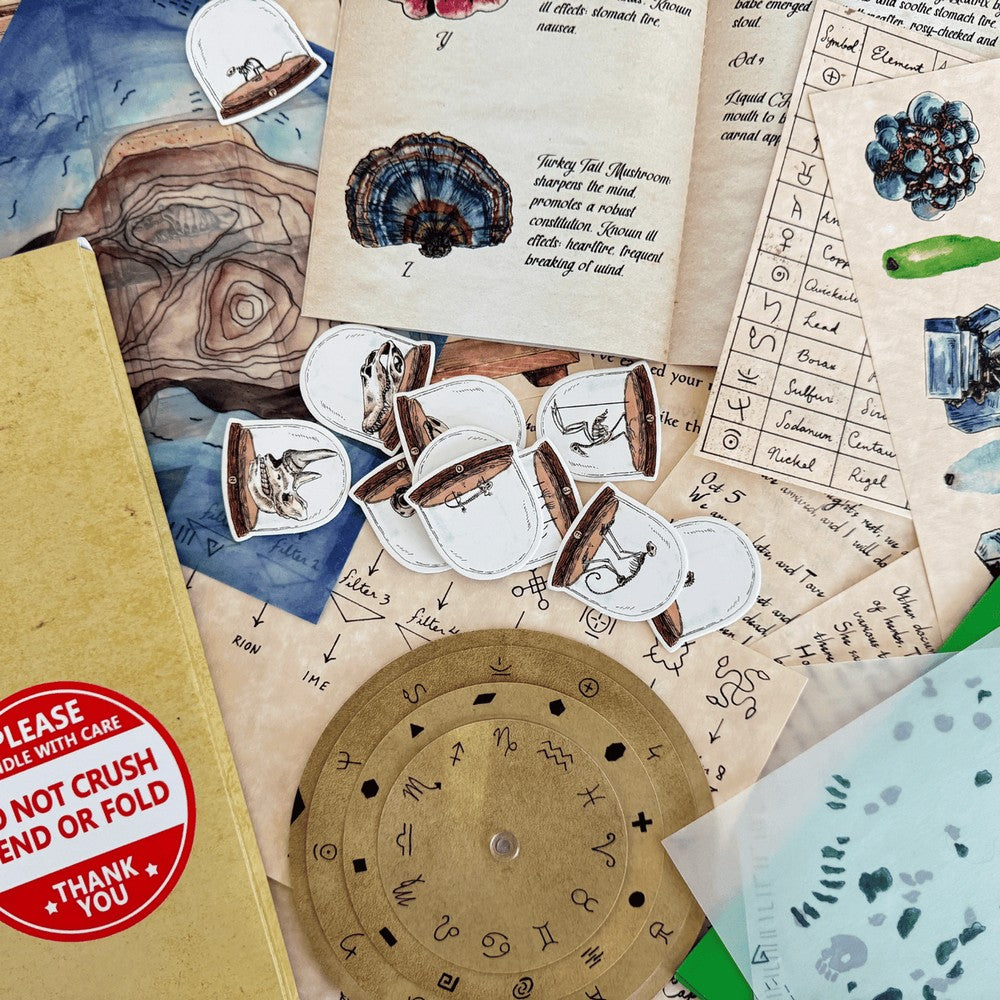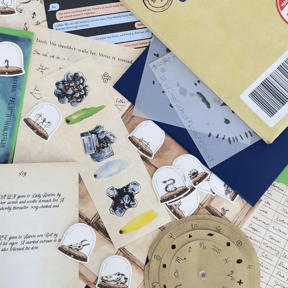 Emerald Echoes is a narrative puzzle adventure featuring beautifully-illustrated puzzles and tactile artifacts. Through the eyes of a historical researcher, players uncover the story of a legendary alchemist and her companions. Told over four chapters, Emerald Echoes is a standalone sequel to The Emerald Flame.