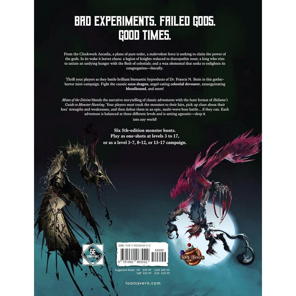 Unleash gothic horror and divine corruption in your next campaign with Motes of the Divine, a standalone 5th Edition (5E) adventure supplement designed for both Dungeon Masters and players. This richly illustrated hardcover campaign book is packed with everything you need to run thrilling monster-hunt adventures and expand your world with new creatures, magic items, and spells.